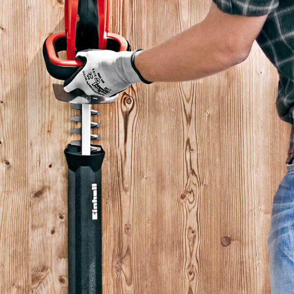 GC-CH 1855/1 Li Kit akumulatorske makaze za živu ogradu su veoma efikasan alat koji pruža dobru uslugu obrezivanja živice, žbunja i grmlja na velikim površinama gde ne postoji priključak na električnu mrežu. Sa Power X-Change sistemom baterija kompanije Einhell, ove makaze za živu ogradu imaju set baterije od 18 V sa 2,5 Ah za duge periode rada. Dug radni vek omogućuje zupčanik napravljen od metala, a čisti rezultati rezanja su obezbeđeni sečivima napravljenim od laserski sečenog i dijamantski brušenog čelika. GC-CH 1855/1 Li Kit ima indikator napunjenosti baterije sa tri LED svetla gde možete da proverite trenutan nivo napunjenosti samo jednim pogledom. Pored toga, baterija se može koristiti za sve alate iz Power X-Change porodice. Isporučuje se sa dodatnim brzim punjačem. Integrisani sigurnosni prekidač za dve ruke zaustavlja makaze za manje od 1 sekunde kada se pusti prekidač. Sečiva su zaštićena aluminijumskim štitnikom. Prednja ručka je podesiva, dok se zadnja ručka može okretati za dobro rukovanje i optimalno prilagođavanje makaza za živu ogradu svakoj radnoj situaciji. GC-CH 1855/1 Li Kit dolazi sa čvrstom zaštita rezača za bezbedan i jednostavan transport i odlaganje.