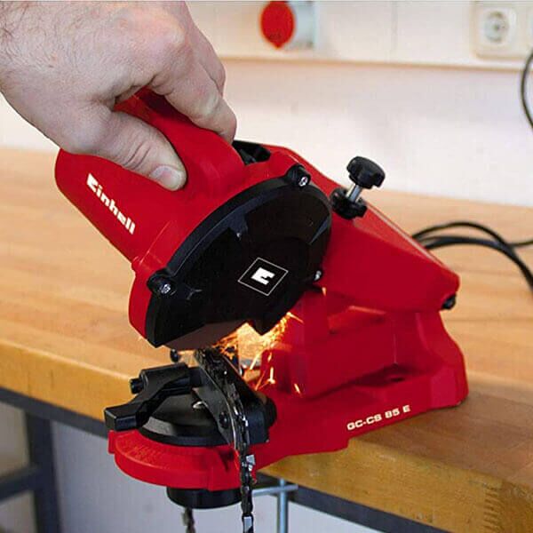 GC-CS 85 E oštrač lanca testere je kompaktan, robustan i pouzdan pomagač za precizno oštrenje svih standardnih lanaca testere. Zahvaljujući okretnoj stegi sa skalom za precizno podešavanje ugla brušenja, sve karike rezača lanca mogu se naoštriti bez ponovnog pozicioniranja. Graničnik dubine štiti lanac od prekomernog uklanjanja materijala.