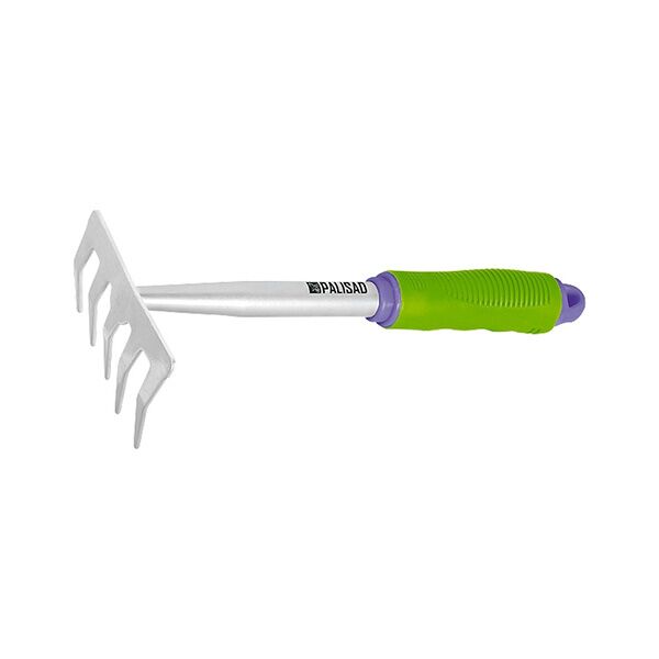 Grabulje, 5 zuba, sa gumenom ručicom. Širina radnog dela 110 mm, ukupna dužina 280 mm. Namenjene su za prikupljanje odsečenih grana, labavljenje i izravnavanje tla. Radni deo izrađen je od alatnog čelika U8 i obojen je praškastim emajlom za zaštitu od korozije. Nakon završetka radova potrebno je očistiti radni deo alata iz ostataka tla.