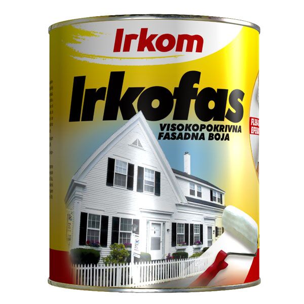 Irkofas je izrađen na bazi akrilnih smola, visokokvalitetnih pigmenata i punila. U pitanju je akrilna farba u beloj boji koja se koristi za bojenje novih i obnovu starih fasada, zidnih površina u enterijeru i drugih površina u građevinarstvu. Izuzetan je za prekrivanje fleka na zidovima nastalih od vlage, upornih žutih mrlja na dimnjacima koje boje za zidove ne mogu prekriti i sve druge vrste fleka. Preko nanetog sloja Irkofasa, može se naneti boja za zidove na bazi disperzije i poludisperzije. Irkofas je moguće tonirati Sintex uljanim emajlom dodavanjem izabrane nijanse emajla u Irkofas do 20%.