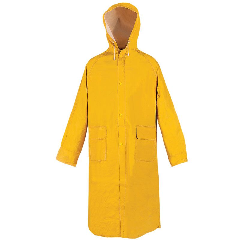 Vodootporna kišna kabanica sa kapuljačom, proizvedena od 100% poliestera sa obostranim slojem PVC-a, šavovi su vareni, dostupna u dve boje. Ventilacija ispod leđa i ispod pazuha. Poseduje unutrašnje elastične manžetne na rukavima.