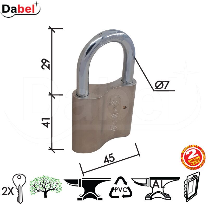 DABEL- Katanac KA2014- Materijal: Mesing- Boja: Niklovano.Upotreba: drvo/metal/pvc/alu.