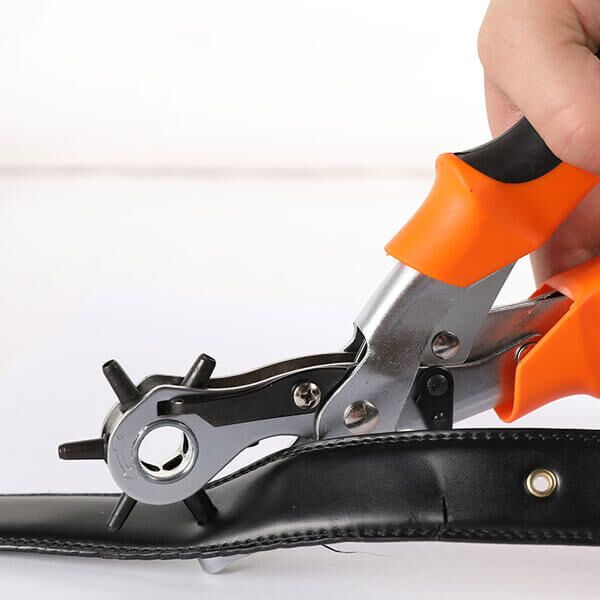 Alat za bušenje rupa ima zamenljive glave bušenja, buši čiste i uredne rupe u koži i drugim mekim materijalima.
