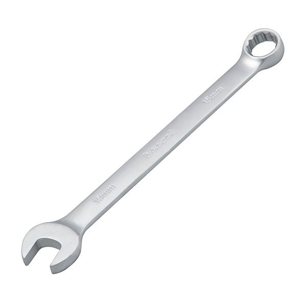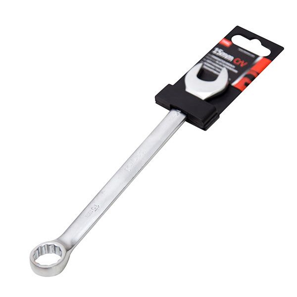 Viljuškasto-okasti kombinovani ključ 15mm za rad sa vijcima sa šestougaonim prihvatom. Izrađen je od kvalitetnog čelika obogaćenog hromom i vanadijumom. Dužina ključa je povećana radi lakšeg rada i omogućava veće sile zatezanja.
