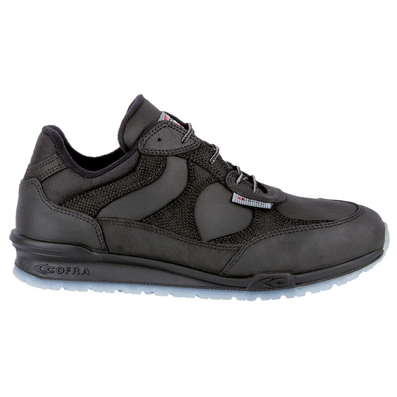 Plitke radne cipele sa gornjištem od kombinacije vodoodbojne nubok kože i paropropusnog tekstila, postava je od 100% poliestera koji je paropropusan, otporan na abraziju i koji brzo upija i oslobađa vlagu. Cipele su 100% bez metala, imaju meku i udobnu COFRA SOFT antistatik, anatomski oblikovanu i perforiranu tabanicu od parfimisanog poliuretana koja, zahvaljujući obliku, omogućava apsorpciju energije. Antistatik, protivklizni đon proizveden je od kombinacije poliuretana i TPU, ima apsorber energije u oblasti pete i otporan je na ulja i naftu.