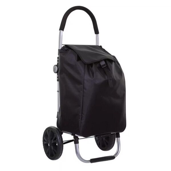 Kolica za kupovinu, izrađena od aluminijuma, u crnoj boji, idealna za lakši transport kupljenih stvari.