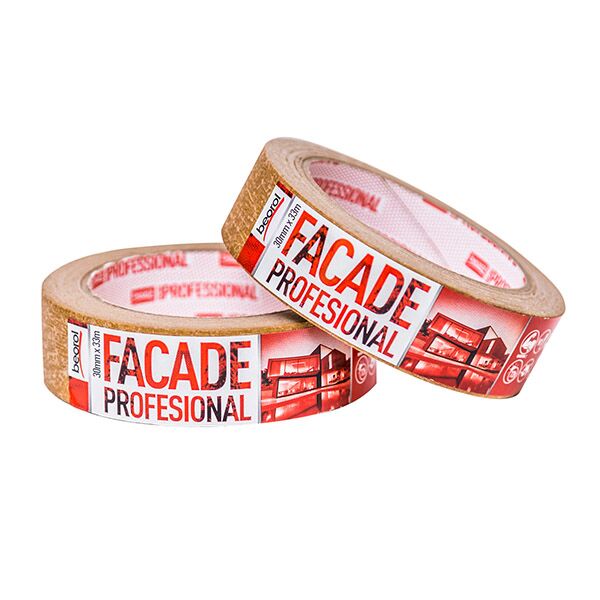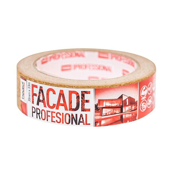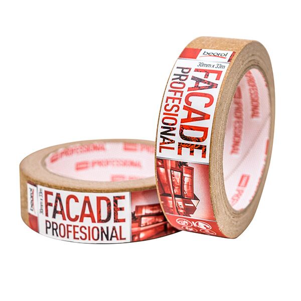 Krep traka Facade Professional je namenjena za spoljašnju upotrebu. Vrsta lepka: Solvent (prirodni kaučuk), u ukupnoj debljini trake od 145μm. Namena trake je zaštita površina prilikom izrade fasada, kao i razne druge aplikacije koje se rade na otvorenom. Preporučuje se korišćenje na raznim vrstama površina (zid, gips-karton, drvo, PVC, metal). Napredan nivo jačine lepljenja. Preporučena satnica skidanja sa površine je 72h. Otpornost na kidanje. Ne ostavlja tragove lepka. Otpornost na temperaturu do 90 ᵒC. Boja: Braon. Širina 30mm.
