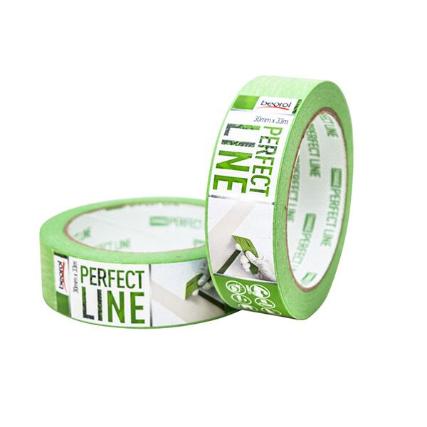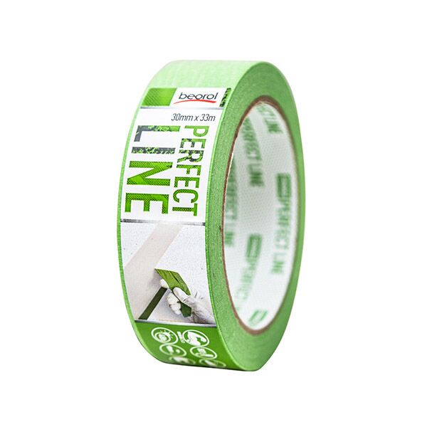 Krep traka Perfect line je namenjena za precizno farbanje površina, dekorativne radove, zaštitu gips karton ploča. Vrsta lepka: Solvent (prirodni kaučuk) u ukupnoj debljini: 120μm. Ne ostavlja tragove lepka. Odlična je za dekorativne tehnike, a posebno za kombinovanje nekoliko tehnika. Olakšano cepanje trake. Elastičan papir daje traci mogućnost da se koristi i na zaobljenim površinama pri dekorativnim radovima. Otporna na visoku temperaturu (80 ᵒC). Standardni nivo jačine lepka. Preporučena satnica za skidanje 48h. Boja: Zelena. Širina 30mm.