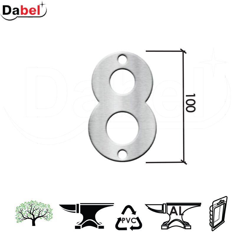 DABEL- Kućni broj ARIEL-8- Materijal: SS304- Boja: Inox.Upotreba: drvo/metal/pvc/alu.