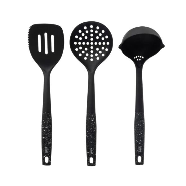 Kuhinjski pribor, set od 3 dela, u crnoj boji, osnovni alat za kuvanje.
