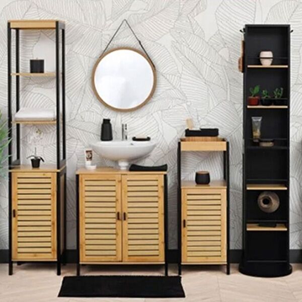 Sa prirodnom bojom bambusa i crnom bojom vrata, ormarić se lako uklapa u različite enterijere.