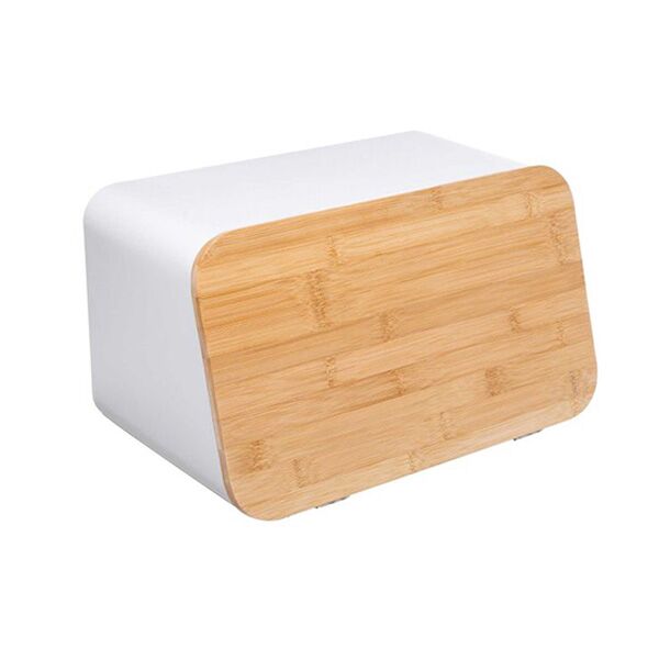Kutija za hleb je elegantne bele boje, sa prednjom stranom – poklopcem u boji i sa teksturom bambusa koja čini kutiju interesantnijom.
