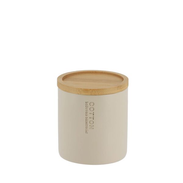 Izrađena od poliresina u bež boji s bambus poklopcem koji daje prirodan izgled i dodatno štiti sadržaj posude.
