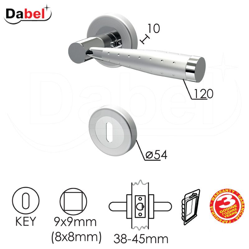 DABEL- Kvaka rozeta za vrata SAŠA- Materijal: Zamak- Boja: Hromirano/Mat-Hromirano.Upotreba: drvo.