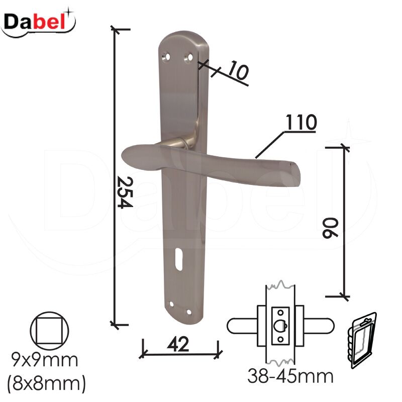 DABEL- Kvaka šild za vrata BRUS- Materijal: Čelik/Alum- Boja: Nikl/Bruseni Nikl.Upotreba: drvo.