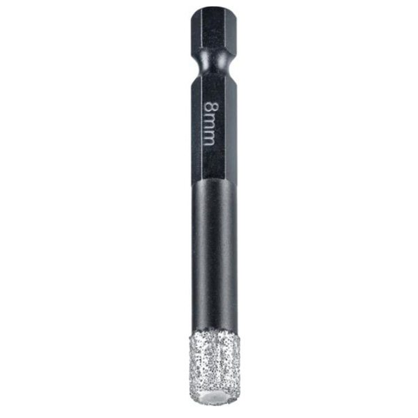 Dijamantska krunasta burgija sa prihvatom od 1/4 inča E 6.3 namenjena je za upotrebu u akumulatorskim bušilicama sa 1/4-inčnim prihvatom, kao i u svim standardnim bušilicama sa kablom.