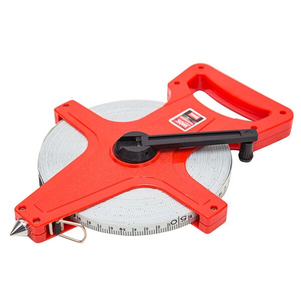 Merna traka profesional, dužine 50m, sa otvorenim plastičnim kućištem i ergonomskim rukohvatom. Merna traka izrađena od fiberglasa.
