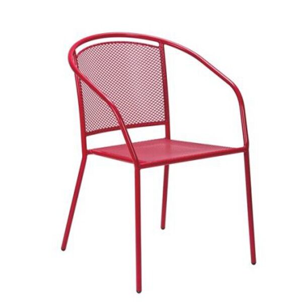 Baštenska metalna stolica crvena Arko, stolica sa čeličnom mrežicom i naslonom za ruke, specijalni premaz stolice za spoljašnju upotrebu.