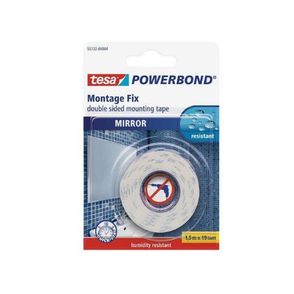 Snažna obostrano lepljiva montažna traka za sigurno i brzo pričvršćivanje ogledala i drugih ravnih predmeta u vlažnim prostorijama.