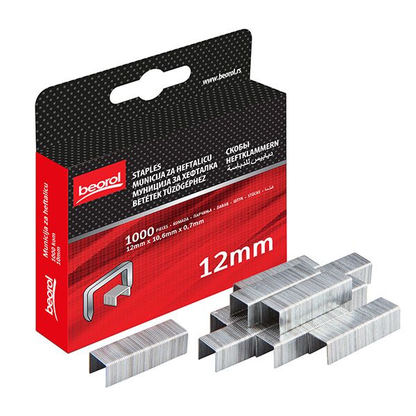 Municija za heftalicu 12mm, različitih dubina zakucavanja. Pakovanja sadrže po 1000 komada. Odgovaraju heftalici HFT.