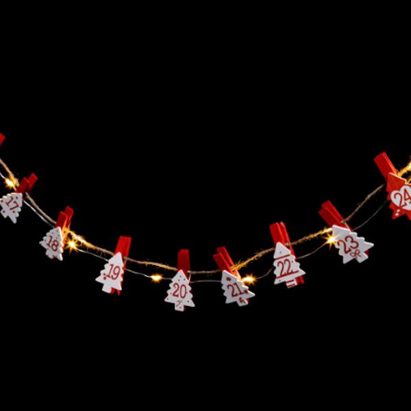 Novogodišnja dekoracija u obliku kalendara sa lampicama za prazničnu atmosferu.