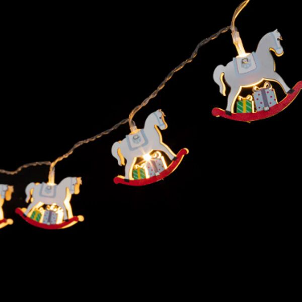Novogodišnja dekoracija u obliku konja sa lampicama za svečani praznični ugođaj.