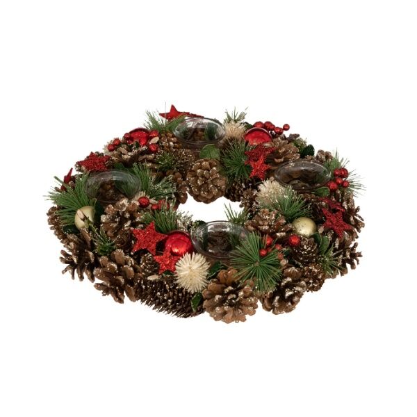 Novogodišnja dekoracija svećnjak venac sa šišarkama za 4 sveće (191357)