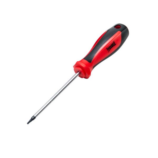 Odvijač sa zvezdastim (T) vrhom. Telo odvijača je izrađeno od hrom vanadijum (CrV) čelika. Vrh je dodatno kaljen. Ergonomski rukohvat izrađen od visokootporne plastike i meke gume omogućava udoban i čvrst hvat. Trougaoni poprečni presek drške obezbeđuje lak i siguran prenos sile sa šake korisnika na radni deo odvijača. Dužina 100mm.