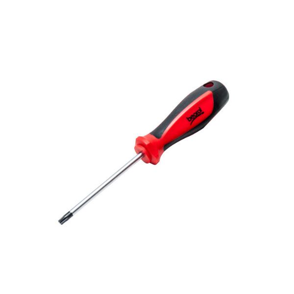 Odvijač sa zvezdastim (T) vrhom. Telo odvijača je izrađeno od hrom vanadijum (CrV) čelika. Vrh je dodatno kaljen. Ergonomski rukohvat izrađen od visokootporne plastike i meke gume omogućava udoban i čvrst hvat. Trougaoni poprečni presek drške obezbeđuje lak i siguran prenos sile sa šake korisnika na radni deo odvijača. Dužina 100mm.