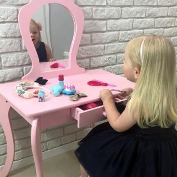 Da li i vaše dete sanja da ima svoj toaletni sto? Naš toaletni sto za devojčice je savršeno rešenje za male princeze. Sigurno će zadovoljiti zahteve i najzahtevnijih malih dama. Sigurni smo da će naš toaletni sto ispuniti san mnogih malih princeza. Savršeno za dečiju sobu. Toaletni stočić će se sigurno svideti svakoj devojci koja voli da se oblači i imitira svoju majku prilikom šminkanja.