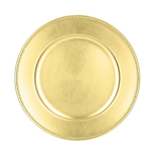 Okrugli tanjir polipropilen dimenzija 33 cm u zlatnoj boji, za luksuzno posluživanje.
