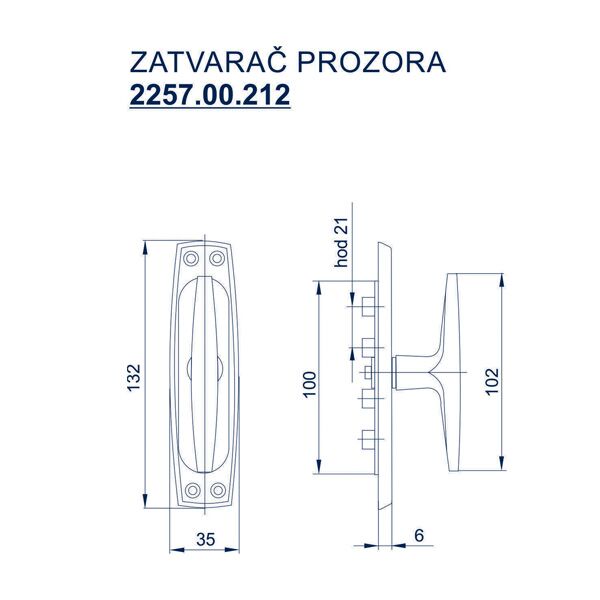 Ovo je zatvarač prozora sa olifnom-tribl mehanizmom, koji se koristi za zatvaranje i pričvršćivanje prozora.
