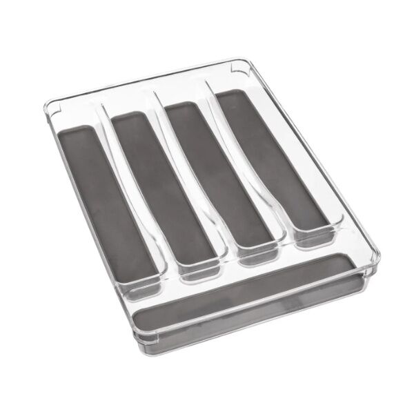 Organizator za escajg sa 5 pregrada, od plastike, siva, za uredno odlaganje pribora.