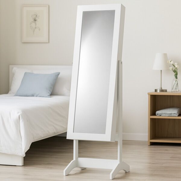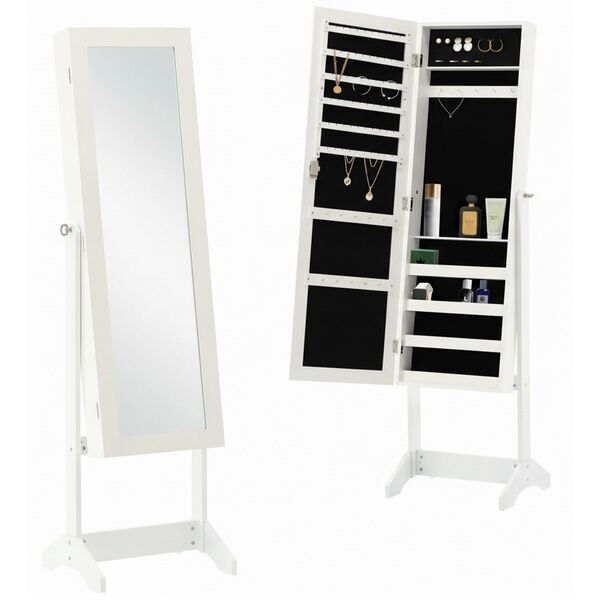 Ovaj elegantni ormarić za nakit u beloj boji savršeno kombinuje funkcionalnost i stil. Napravljen od kvalitetnog E1 MDF materijala, poseduje kukice i udubljenja za sigurno odlaganje ogrlica, narukvica i minđuša, kao i police za različite aksesoare. Dodatni ključ sa strane ormarića omogućava sigurnu i praktičnu upotrebu, dok kompaktnе dimenzije od 34 x 35,5 x 140 cm čine ovaj komad idealnim za svaku prostoriju.