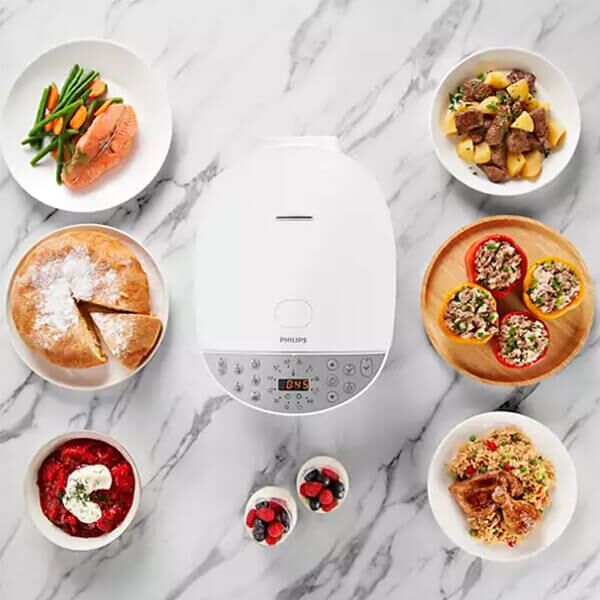 60 programa kuvanja unapred je podešeno za optimalne profile kuvanja. To je kao da imate ličnog kuvara. Obezbeđuje dosledne ukusne rezultate za svaki obrok – uz programe koji uključuju pečenje, kuvanje na pari, sporo kuvanje i pojedinačne programe za određena jela poput kaše, govedine i morskih plodova.