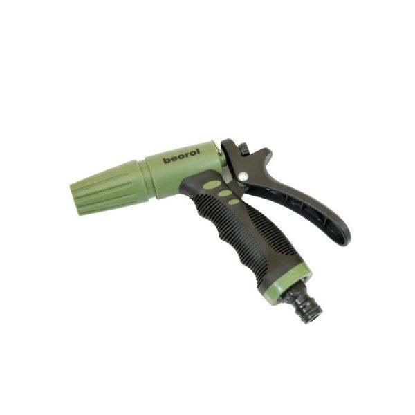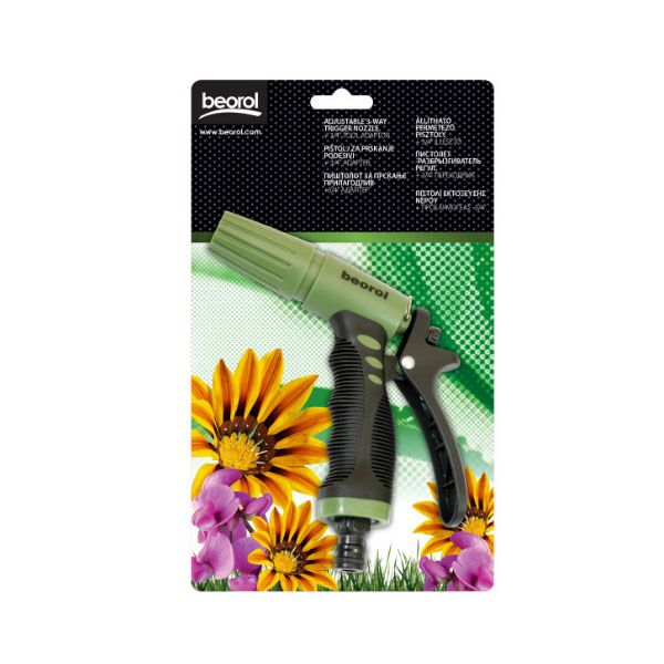 Pištolj za prskanje podesivi sa adapterom od 3/4″. Telo napravljeno od kvalitetne ABS plastike, visoko otporno na udarce i padove. Poseduje metalnu zaštićenu ploču za kontrolu mlaza. Radi lakšeg i udobnijeg rada, rukohvat je gumiran i ergonomski oblikovan. Pištolj ima više režima rada radi boljeg prilagođavanja prskanja poslu koji se obavlja i površini koja se prska.