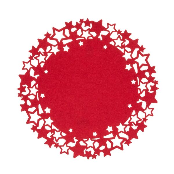 Crveni podmetač od filca, prečnika 38 cm, za praznične aranžmane.