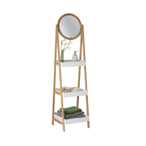 Polica sa 3 nivoa, izrađena od bambusa, opremljena ogledalom, praktičan dodatak za organizaciju prostora.