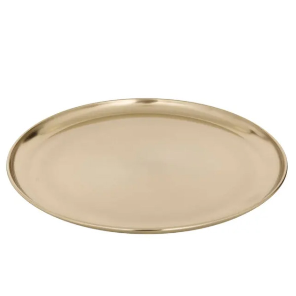 Ovaj zlatni poslužavnik Deco ima prečnik 37 cm i elegantan dizajn koji dodaje sofisticiran detalj vašoj trpezi. Namenjen je za serviranje grickalica, predjela ili dezerta i lep je dekorativni dodatak za svakodnevnu upotrebu ili svečane prilike.