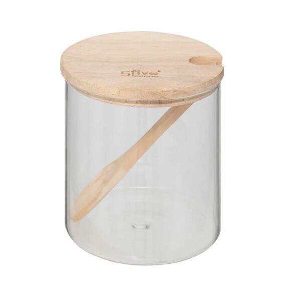 Moderna i praktična posuda za šećer sa drvenom kašikom i poklopcem.