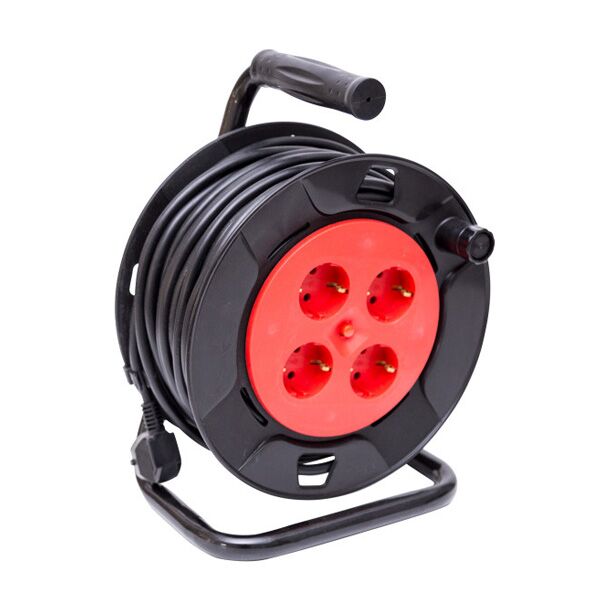 Produžni savitljivi kabl 50 metara, H05VV-F preseka 3×1.5mm2 sa četiri utičnice za upotrebu u zatvorenim prostorima i zaštitom za decu “child protect”. Max. opterećenje 1000W(4.35A) – 3000W(13A) 250V.