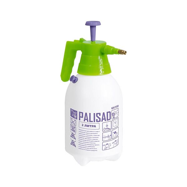 Ručna prskalica od 2 l. Konstrukcija sadrži pumpu pod pritiskom i automatski ventil za kontrolu pritiska. Koristi se u baštama radi zaštite biljaka od štetočina i bolesti, kao i tokom hranjenja i đubrenja. Materijal: jaka ABS plastika. Kako to funkcioniše: Korišćenjem pumpe koja se ugrađuje u poklopac, radni pritisak se ubacuje u bočicu, a zatim se nanosi sprej kada se okidač pritisne i zadrži. Trajanje zavisi od stvorenog pritiska. Sigurnosni ventil se aktivira kada se prekorači prag pritiska od 2,8 atm. Zaključavanje okidača drži ga u radnom položaju za dug rad. Takođe se može koristiti u domaćinstvu.