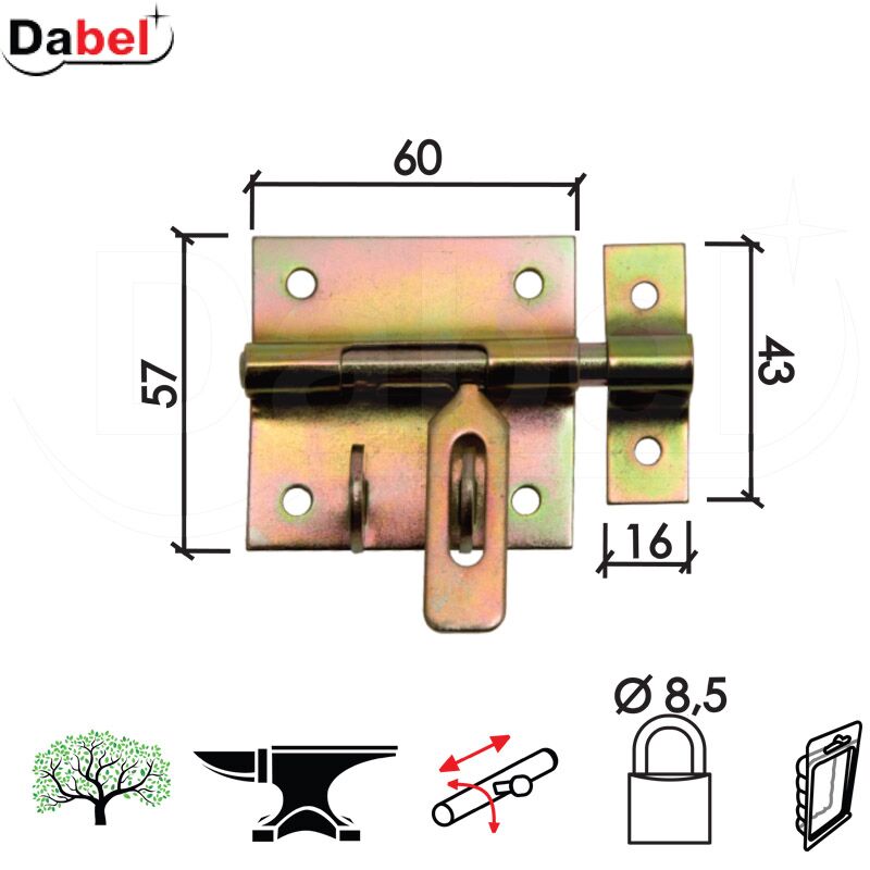 DABEL- Reza za katanac 474- Materijal: Čelik- Boja: Cinkovano žuta.Upotreba: drvo/metal.