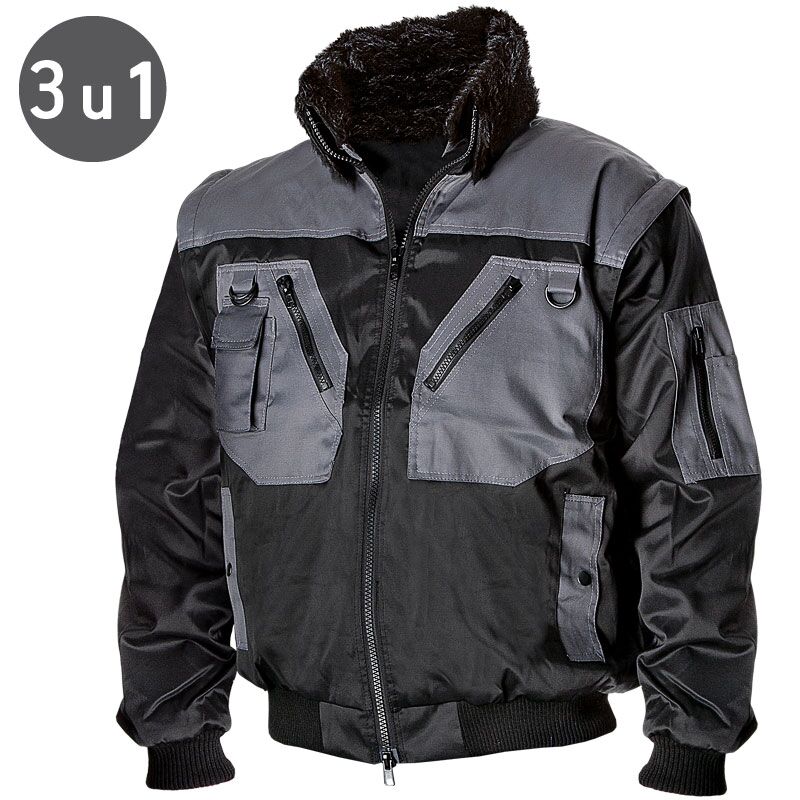 Vodootporna zimska strukirana jakna, postava je od veštačkog krzna, kragna i postava jakne mogu se skinuti, rukavi se mogu skinuti tako da se jakna može nositi i kao prsluk.
