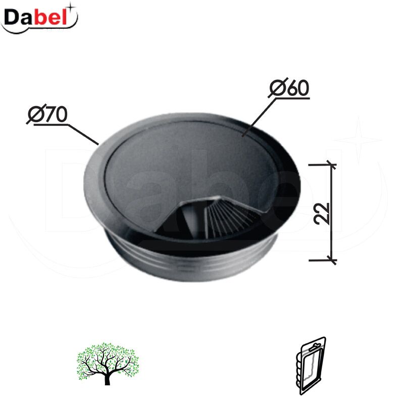 DABEL- Rozeta za kablove MA02- Materijal: Pvc- Boja: Crna.Upotreba: drvo.