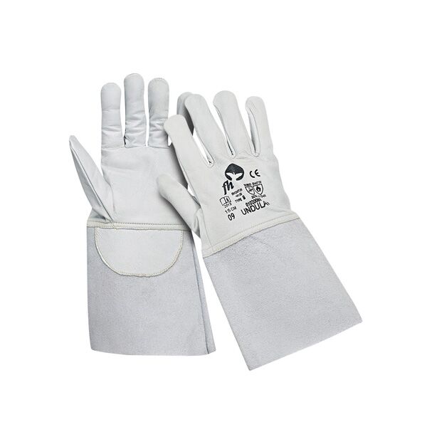 Varilačke rukavice Undulata (za TIG zavarivanje) od mekane kozje kože, šivene kevlarskim koncem. Manžetna je od špalta, dužine 15 cm. Sertifikat za zavarivanje tip B.
