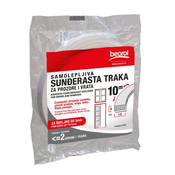 Samolepljiva sunđer traka za prozore i vrata 12mmx6mmx10m GT1012
