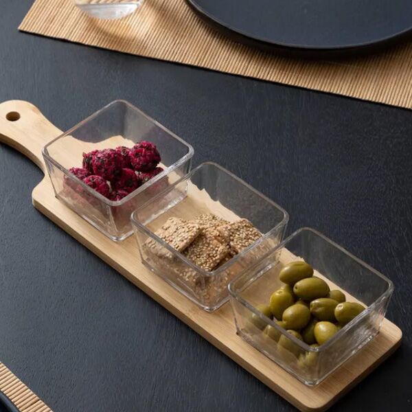 Set za predjelo sa 4 dela (tanjiri/posude), elegantan dizajn. Idealan za serviranje aperitiva i grickalica.
