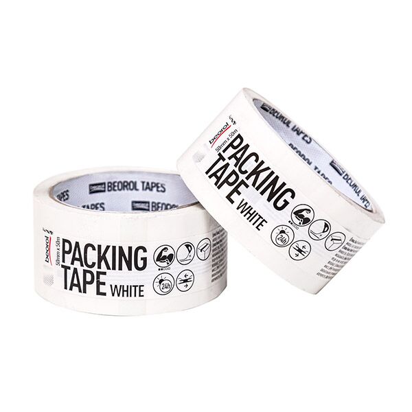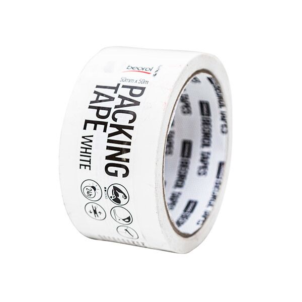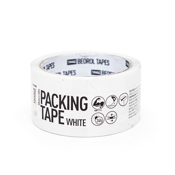 Izdržljiva PVC traka za pakovanje sa akrilnim lepkom. Dužina namotaja trake je 50m. Širina trake 50mm. Boja: bela.