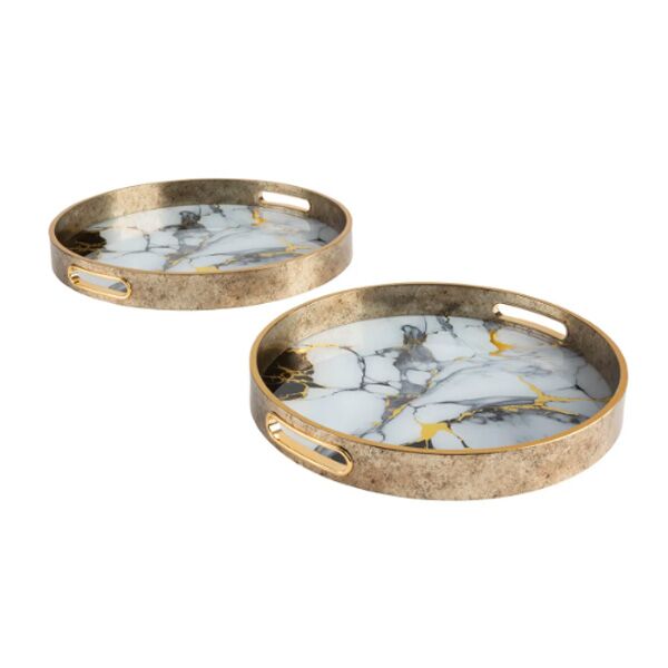 Luksuzan komplet poslužavnika sa zlatnim detaljima – funkcionalan i dekorativan u isto vreme.